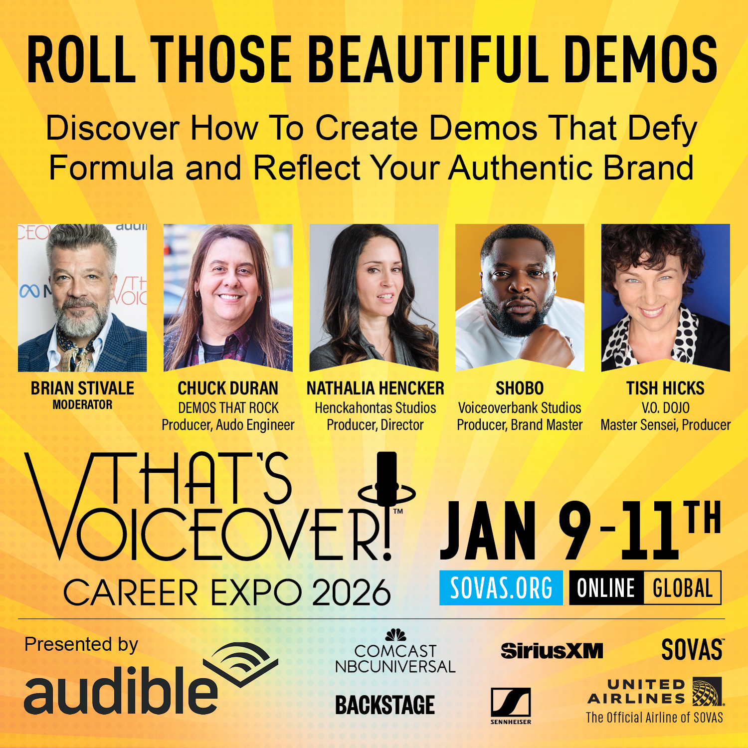 Team SOVAS will be taking a quick 30-minute refuel break so we can keep delivering the awesome experience you’ve come to expect, packed with real-world auditions, job opportunities, and game-changing insights. That’s Voiceover! Career Expo isn’t just a conference; it’s your launchpad for leveling up your career.