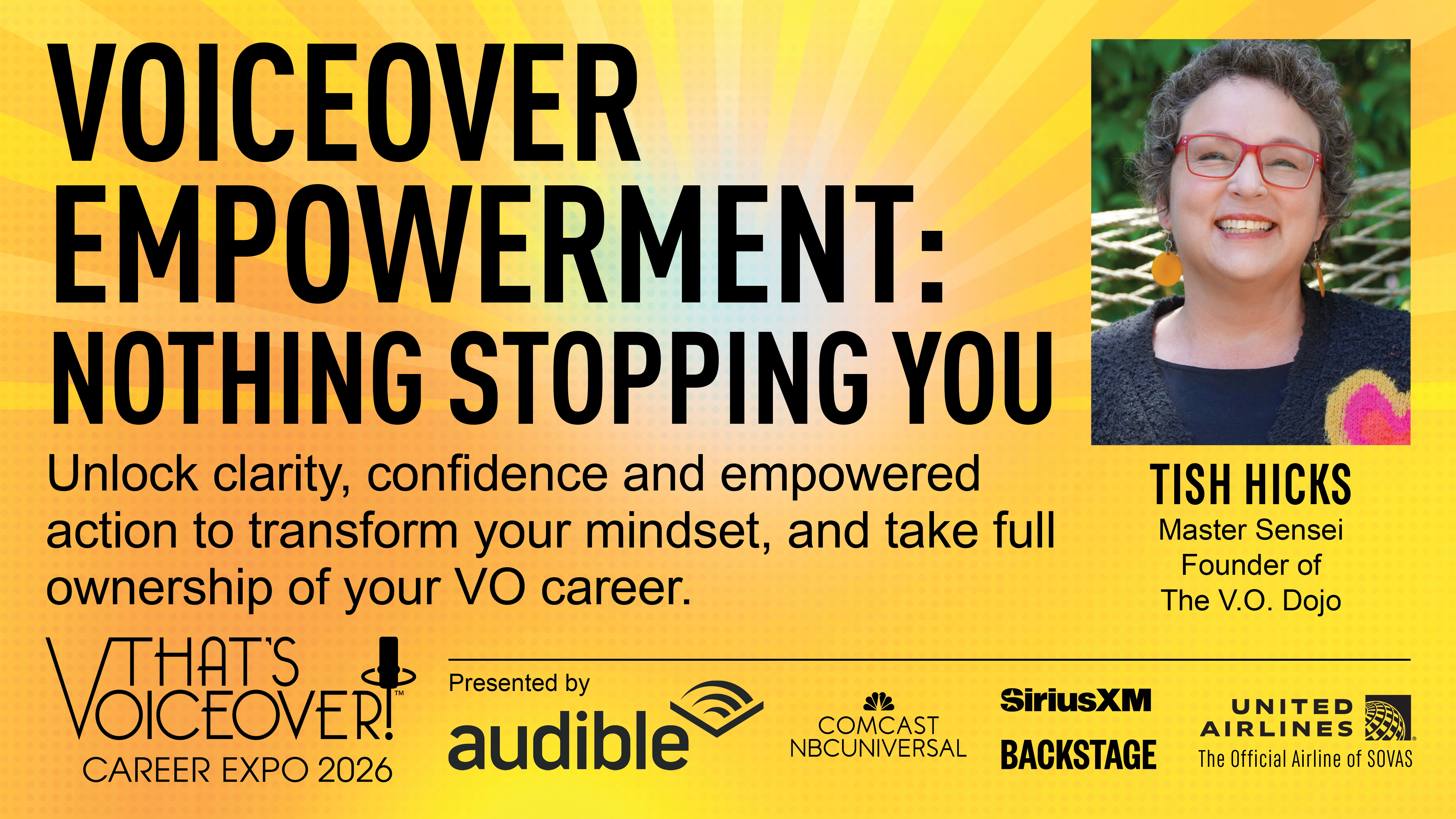 Tish Hicks transformed her decades of voiceover expertise and her unstoppable commitment to self-empowerment and work-life balance into a powerful, disciplined approach to actor development that has become her signature. Her rigorous, mindset-driven transformation process has helped countless voice actors expand their craft, elevate their confidence and take ownership of their careers. Now, for the first time at That’s Voiceover!, Tish is bringing this breakthrough methodology to a special Mastery Intensive Session, an experience unlike anything most voice actors have ever encountered.