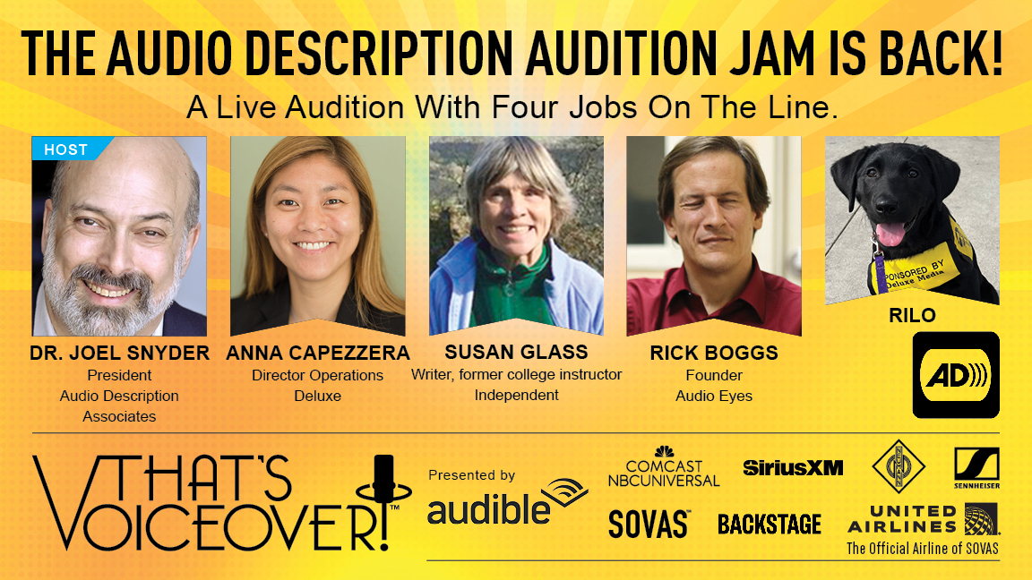 Back by popular demand, the Audio Description Audition Jam returns to That’s Voiceover!™ Career Expo, offering an incredible opportunity to secure four paid voiceover roles in TV and Film! This is an interactive training workshop, as well as a real-world casting call for 4 actual jobs! Everyone is eligible to audition and no purchase is necessary.